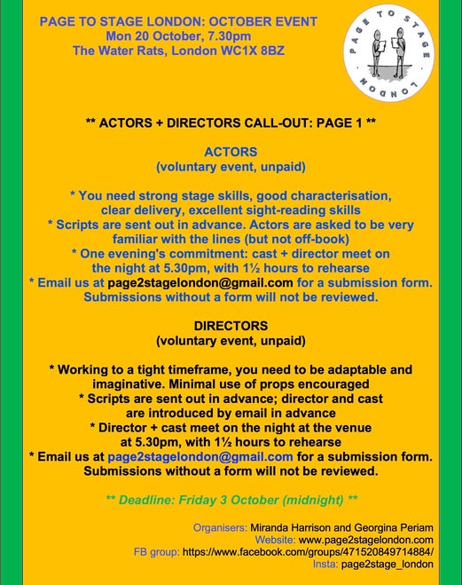 To apply for a submission form, check out all the details given here and either fill in the online form or email us at page2stagelondon@gmail.com